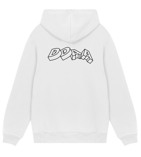 Stay cozy with our white regular hoodie, made from organic cotton and recycled polyester. It features an ‘DDAA’ 3D letter graphic on the front and back. Designed with a kangaroo pocket, a true-to-size fit, a double-layered hood with drawstrings, finished with ribbed cuffs and hem.