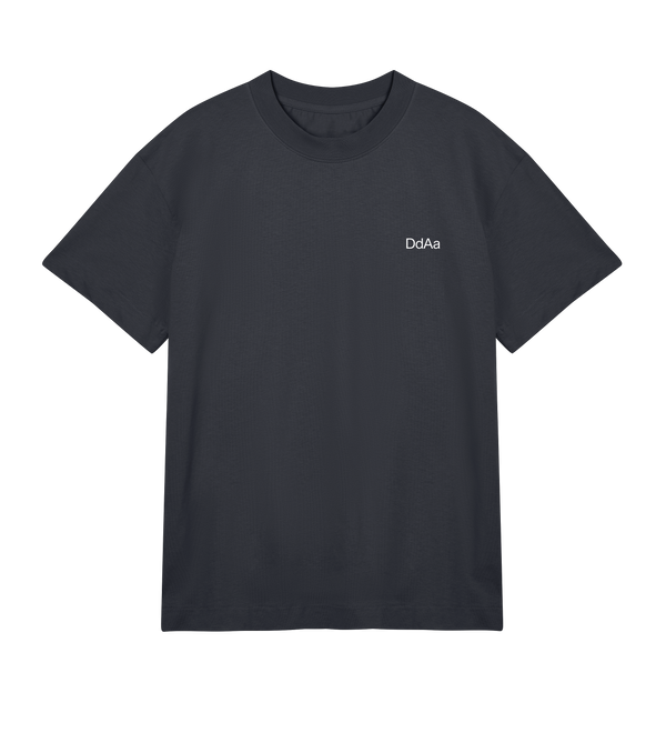A timeless black short sleeve tee, crafted from heavy organic cotton. With a ‘Dd Aa’ text on the back and on the chest. Designed with an oversized, boxy fit and a high, chunky ribbed crewneck.