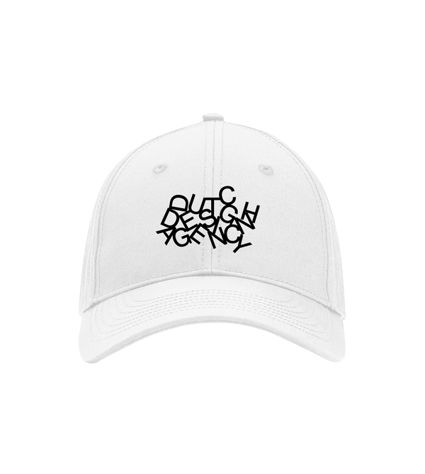 A baseball cap in white with our agency name. Crafted from durable organic cotton twill. It features a sturdy brim, stitched eyelets and velcro size adjustment. With a structured feel and fine single-needle topstitching. Adding an edgy, creative touch to your everyday look.